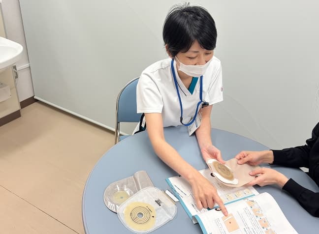 “安心して使えるように”――認定看護師がストーマ装具について丁寧に説明しています